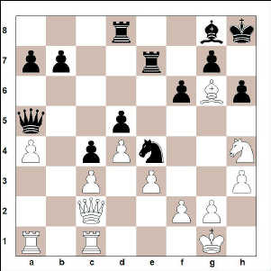 Þessi staða kom eftir 26. leik Guðmundar, Bh7-g8. Sigurjón gat nú leikið 27. Bxe4! Hxe4 28. Rg6+ Kh7 29. f3 og eftir 29. … Hxe3 á hann gangandi þráskák. Í raun og veru getur hann líka teflt til vinnings með 29. Rf4 sem hótar 30. f3. En í stað þess valdi hann að leika 27. Hab1 og eftir 27. … Rd6 var hann með ágæta stöðu sem tapaðist þó eftir 61 leik.