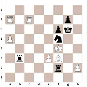 43. … Kh6! 44. Kxf5 Hxe3! 45. Hc5 g6+ 46. Kg4 Hfxf3