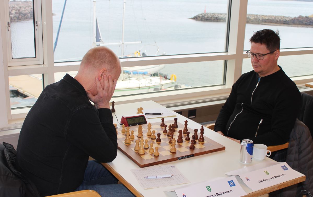 Bragi kom gríðarlega á óvænt í byrjuninni og beitti byrjun sem margir telja að eigi heima á ruslahaugunum. Sjálfur Fílagambíturinn. Fullkominn sullufótarfræði og sullið heppnaðist hjá Braga að þessu sinni. Bragi fékk góða liðsskipan og hættulega sóknarstöðu og strax í 12. leik lék Sigubjörn nýjum leik í stöðunni sem leiðir líklega til taps. Snaggaraleg skák hjá Braga.