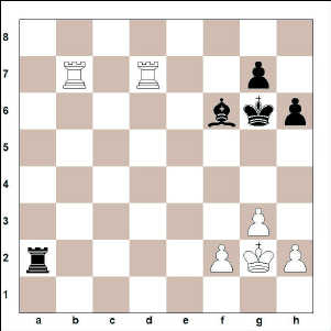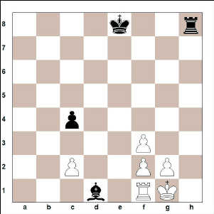Hvítur er skiptamun og peði yfir og sannarlega góð ráð dýr hjá unga manninum. Hann lék nú 37. … Kh5. Hvítur sá nú leið til að komast í „gjörunnið“ hróksendatafl og lék: 38. Hxg7?? Bxg7 39. Hxg7, en þá kom skyndilega 39. … Hxf2+! og eftir 40. Kxf2 var svartur patt. Jafntefli í höfn.