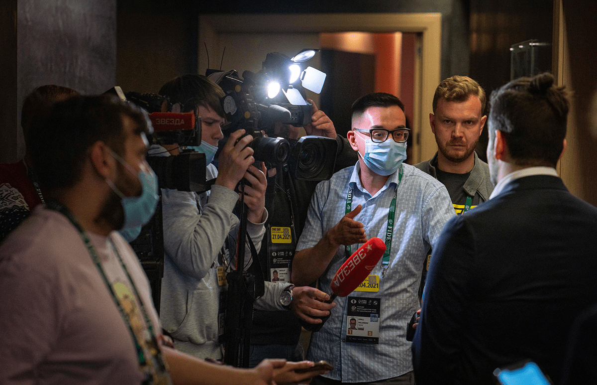 Rússneskir fjölmiðlar ræða við Nepo. Mynd: Lennart Ootes.