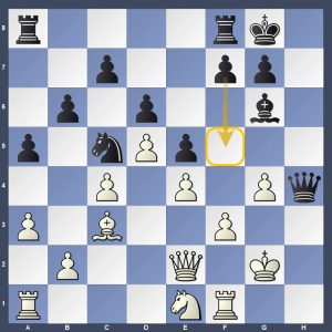 Sannarlega einn af fallegri leikjum mótsins, sannkallaður „Fréttablaðsleikur“. Ef hvítur drepur þá drepur svartur með biskup og hvítur má ekki drepa til þar sem svarta sóknin verður óstövandi.
