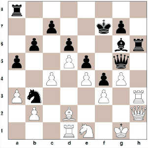 16. … h5 17. h3 Dh4 18. Kg2 Rc5 19. De2 hxg4 20. hxg4