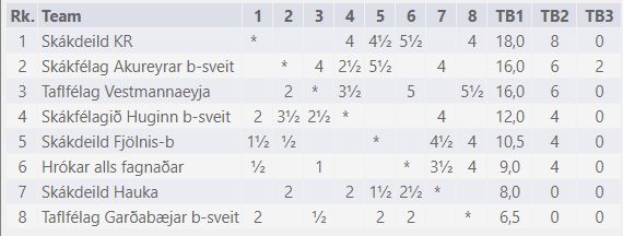 Skákdeild KR, b-sveit norðanmanna og Eyjamenn standa þar langbest að vígi.