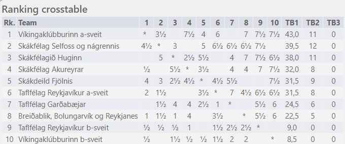 Víkingaklúbburinn endurheimti efsta sætið með 7-1 stórsigri á Breiðabliki í sjöundu umferð. SSON sem var efst fyrir umferðina tapaði hins vegar 3-5 fyrir Hugin þar sem það það vakti athygli að Huginsmenn töpuðu einni skák í ótefldri skák. Eitthvað sem gæti reynst dýrt í mótslok.