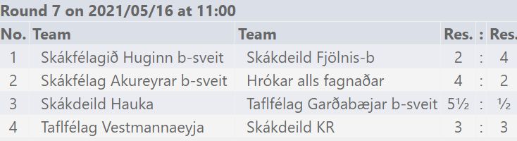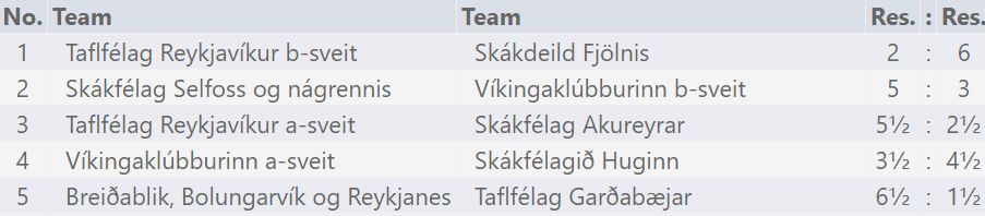 Sigur Víkingaklúbbsins var sannfærandi og stór. Þeir töpuðu fyrir Hugin í lokaumferðinni en það kom ekki að sök. SSON vann 5-3 á b-sveit Víkinga þar sem Víkingar unnu á þremur neðstu borðunum. Fjölnir, TR og Breiðablik unnu í lokaumferðinni. Hin tvö fyrrnefndu taka sæti í úrvalsdeild ásamt SA.