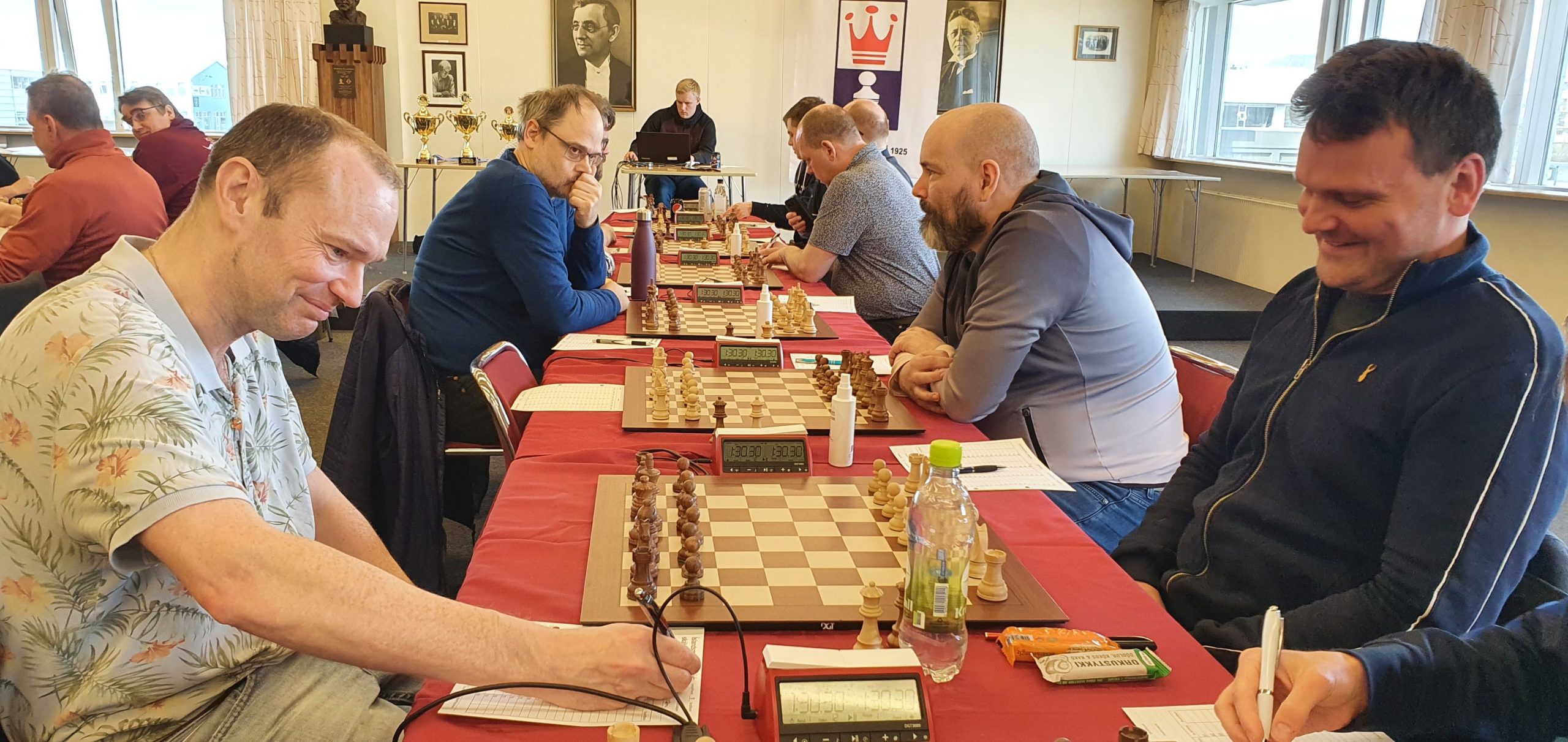 Fái Víkingaklúbburinn 2 vinninga á móti Hugin er titilinn í höfn. Tapist viðureignin 0-8 er titilinn fyrir bý en ½-1½ vinningur gæti dugað ef SSON fær ekki 6 vinningum meira en Víkingaklúbburinn.