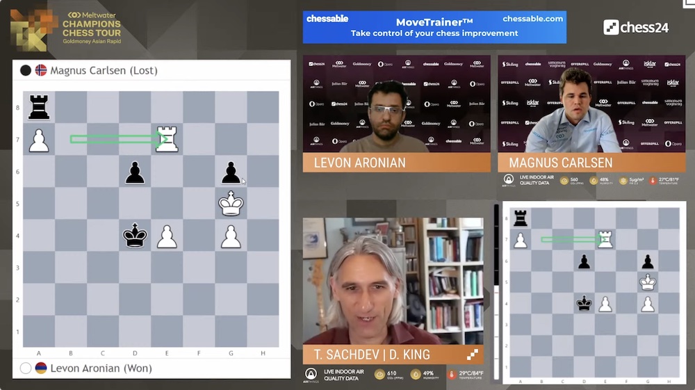 Þessa dagana fer fram enn eitt ofurmótið á Chess24. Mótið ber heitir Goldmoney Asian Rapid og er hluti Meltwater Champions Chess Tour. Sextán keppendur taka þátt og átta efstu komas í útsláttarkeppnina. Fjöldi skákmanna frá Asíu tekur þátt sem ekki kemur á óvart miðað við styrktaraðila mótsins!
