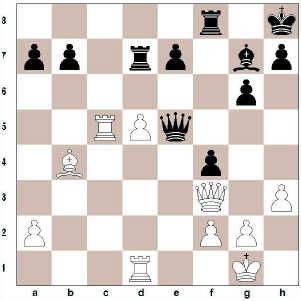 Eilítið ónákvæmur leikur sem vinnur þó strax. Hér var best að leika 26. Hb5 og seilast eftir b-peðinu., t.d. 26. … Hd8 27. Df3 o.s.frv. Nú getur svartur haldið jafnvægi með 26. … Df7! en taldi sig hafa fundið betri leik.