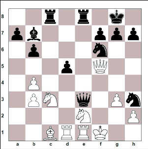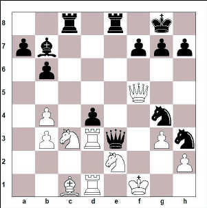 Tapleikurinn. Best var 19. Dxe4!? Dxe4 20. Hxd7 De5 21. Hxb7 Bxc3 22. Bxc3 Hxc3 23. Rxc3 Dxc3 24. Hd1 og hvítur hefur allgóð færi með hrók og léttan gegn drottningu.