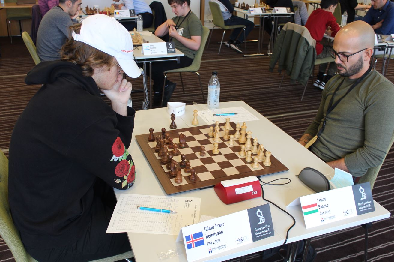 Styrkleikamunur var nokkur í þessari fyrstu umferð af ellefu. Lítið var um óvænt úrslit en hinn ungi Hilmir Freyr Heimisson (2309) vann stórglæsilegan sigur á stórmeistara frá Ungverjalandi, Tamas Banusz (2631). Hilmir var að öðrum ólöstuðum stjarna dagsins. Hér er glæsileg sigurskák hans þar sem hann hreinlega tætti stórmeistarann í sig með svörtu!