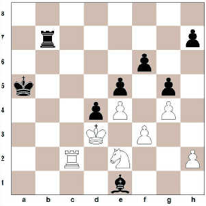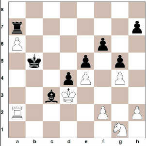 42. … Ba5 43. Hb2+ Kxa6 44. Hb1 Hc7 45. Hb2 Be1 46. f3 Ka5 47. Hc2 Hb7
