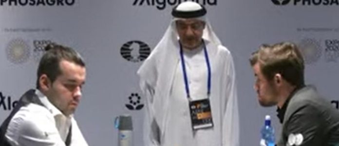 Fyrsta skák heimsmeistaraeinvígisins hófst núna kl. 12:30.