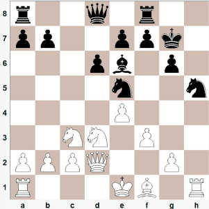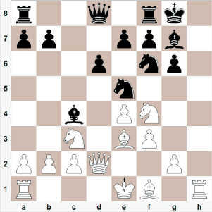 – og þá erum við komin að stöðumyndinni. Hvítur lék 13. Rd3! og svartur er varnarlaus að mati „vélanna“. Framhaldið varð…
