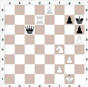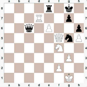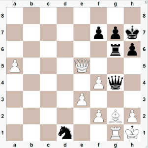 Danmerkurmeistarinn 2016 og 2017 er hér í krappri vörn. Jóhann stóð frammi fyrir þeim augljósa kosti að leika 54. Df7+!. En ekki er allt sem sýnist. Jóhann sá óvæntan möguleika til björgunar fyrir svartan. Eftir 54. … Rxf7+ 55. exf7 Kh7 56. fxe8(D) kemur nefnilega 56. .. Dh1+! Hvítur verður að að leika 57. Kxh1 og þá er svartur patt.