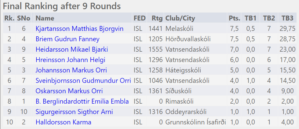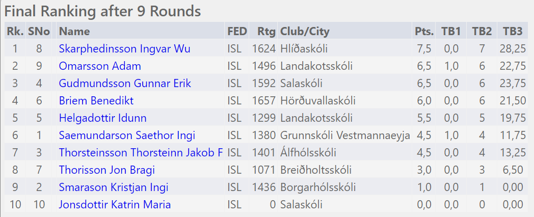Mótið á Chess-Results: Eldri flokkur | Yngri flokkur