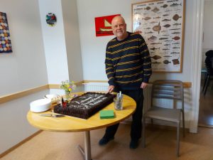 Skákmennn fengu svo tertu og kaffi í lok mótsins og var vel tekið. Forseti félagsins fékk sér svo fyrstu sneiðina af súkkulaði tertunni.