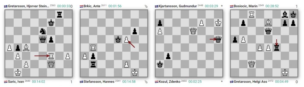 Liss Acevedo Mendez braut ísinn með öruggum sóknarsigri á 4. borði. Lenka Ptácniková hafði einnig sigur í vel útfærðri skák á 1. borði. Jóhanna Björg tapaði á 2. borði en Hallgerður Helga hafði að lokum sigur í sinni skák á 3. borði, með mikilli þolinmæði, og tryggði íslensku sveitinni 3-1 sigur í viðureigninni.