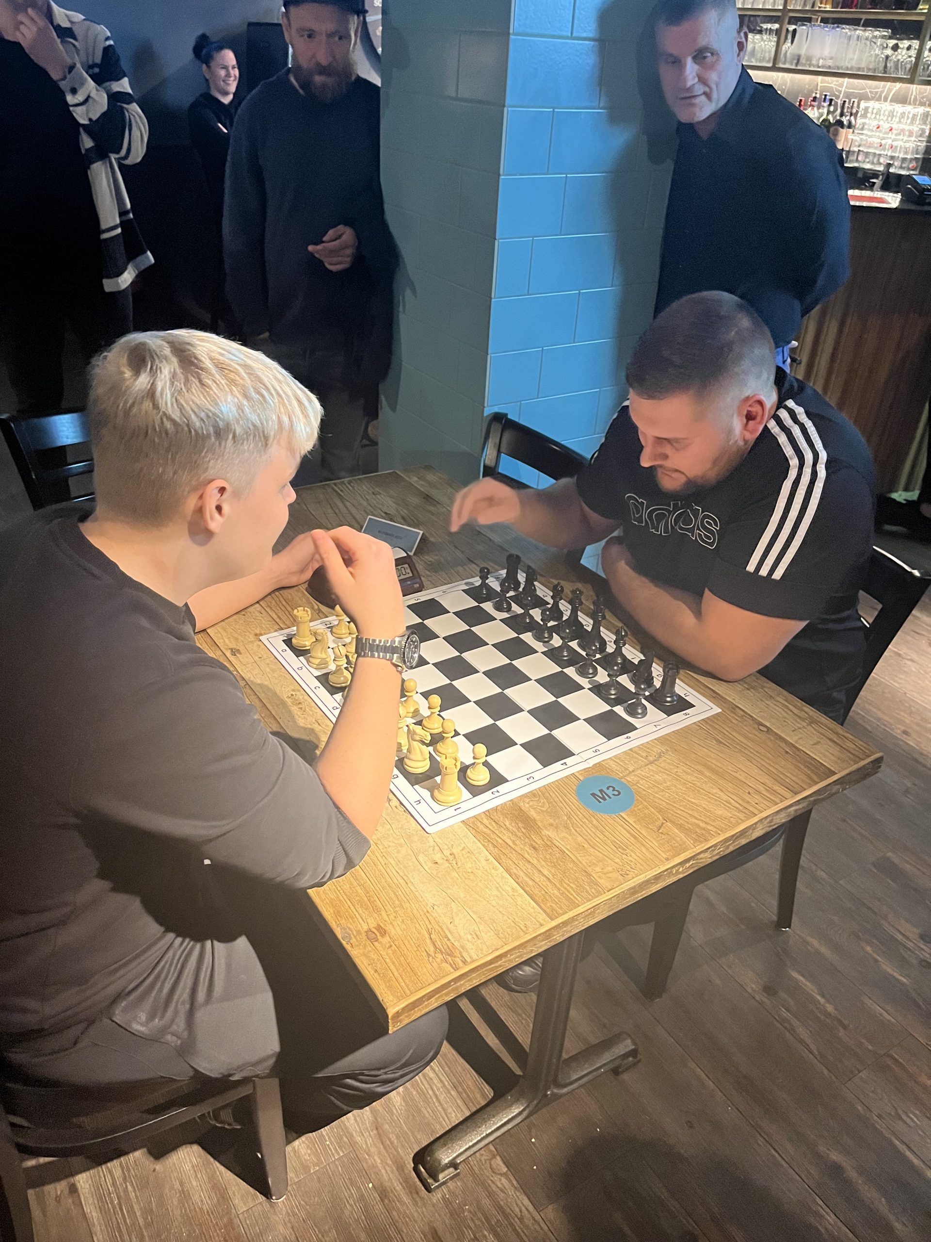 Arnar Gunnars var svo með kolunnið tafl gegn Vigni Vatnari en eftir mikinn klukkubarning náði Vignir að halda jafntefli á einhvern ótrúlegan hátt, sem tryggði VVS í úrslitin þar sem svörtum dugði jafntefli.