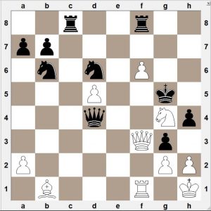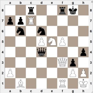 Hvíta staðan er greinilega betri því að kóngsstaða Hollendingsins er afar viðkvæm. Vinningsleiðin sem Pólverjinn fann er stórglæsileg og minnir á leikfléttur 19. aldar meistaranna: hvítur leikur og mátar: