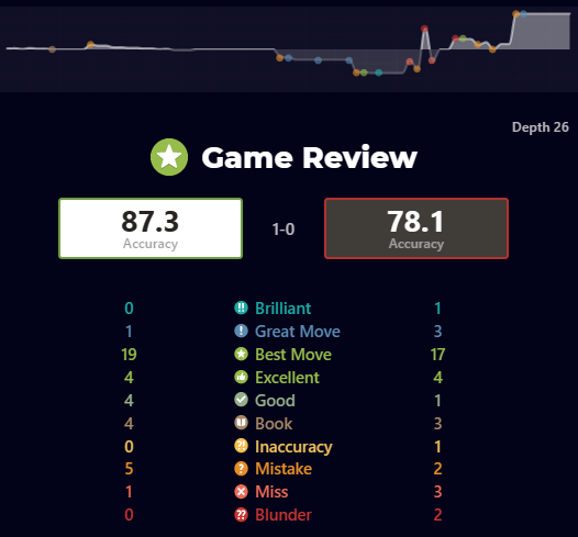 Eftir 27.Dxc4 lék Nepo 27…Hag8? þegar 27…Rf3 hefði tryggt honum áframhaldandi betra tafl. Eftir 28.Dc6 átti Nepo 28…Rf5! en missti af þeim möguleika ítrekað og notaði fáranlega lítinn tíma á köflum í krítískum stöðum.