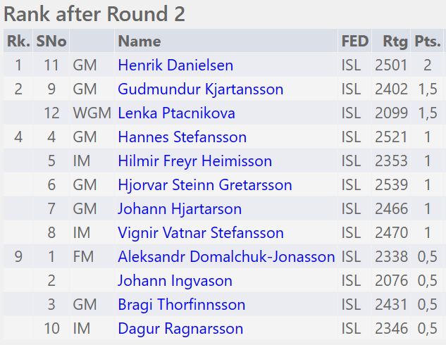 Henrik efstur og Lenka og Guðmundur þar á eftir. Skemmtilegt að allir keppendur eru komnir á blað!