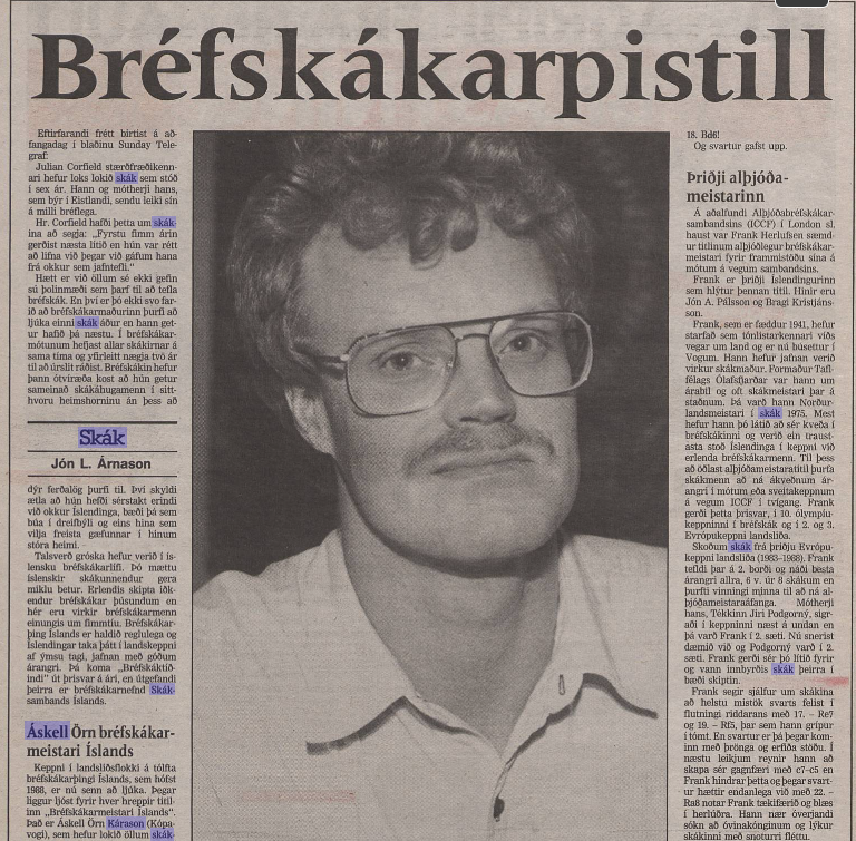Hinn síungi og sístúderandi Áskell Örn Kárason fagnar í dag sjötugsafmæli sínu. Áskell hefur verið mjög áberandi í íslensku skáklífi um áratugaskeið og gengið í ýmis hlutverk. Hann hefur nánast borið skáklíf á Akureyri á herðum sér um langt skeið.