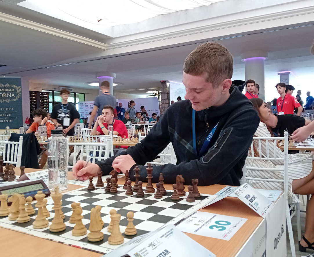 Josef Omarsson (1764) er númer 38 í styrkleikaröðinni í sínum flokki og vann í fyrstu umferð. Hann mætti stigaháum Frakka Paul Boulous (2073) og hafði hvítt. Skákin var sú eina sem var í beinni útsendingu. Josef er mjög duglegur að undirbúa sig og var algjörlega klár í bátana í drottningarbragði. Josef fékk þægilegra tafl og einhverja smá stöðulega sénsa en sá franski varðist vel og jafntefli á endanum fín úrslit, Josef aldrei í neinni hættu.