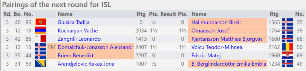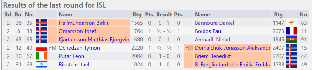 Birkir Hallmundarson tefldi við Daniel Bannura (1147) frá Kýpur. Birkir tefldi skákina mun betur með hvítu og var með mikla stöðulega yfirburði og var í raun að gera allt rétt. Upp úr þurru átti svartur allt í einu heppnistaktík í stöðunni sem vann skiptamun fyrir svart. Þrátt fyrir það gat hvítur enn barist, svo góð hafði staðan verið en nú loks fór Kýpverjinn að tefla betur og náði að vinna skákina. Ákveðin óheppni en svona er skákin stundum, síðasti afleikurinn tapar.