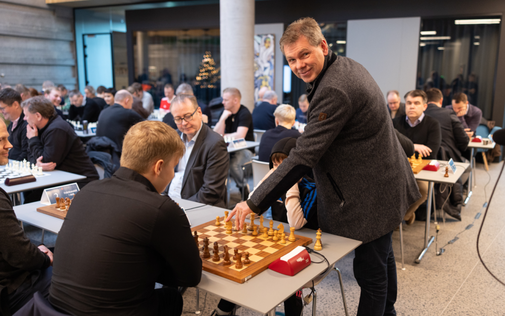 Þorsteinn Stefánsson starfsmaður Landsbankans og fyrrverandi stjórnarmaður Skáksambandsins lék fyrsta leiknum fyrir Vignir Vatnar á efsta borði og opnaði mótið.