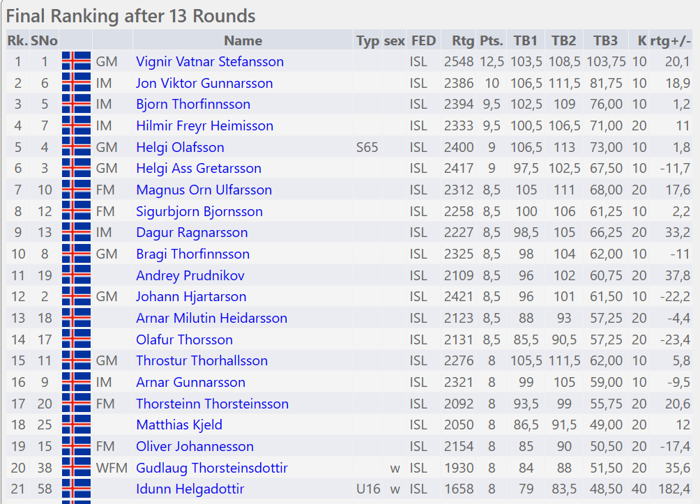 Stigaaflakóngurinn reyndist þó vera Þorsteinn Jakob Þorsteinsson sem hækkar um 220 hraðskákstig!