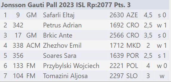 Jóhann byrjaði einnig nokkuð rólega og fékk 1,5 úr 3 fyrstu skákunum gegn stigalægri andstæðingum. Tvær sigurskákir komu í kjölfarið en svo tap í sjöttu umferð gegn Luka Skuhala.