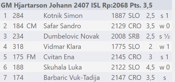 Jóhann byrjaði einnig nokkuð rólega og fékk 1,5 úr 3 fyrstu skákunum gegn stigalægri andstæðingum. Tvær sigurskákir komu í kjölfarið en svo tap í sjöttu umferð gegn Luka Skuhala.