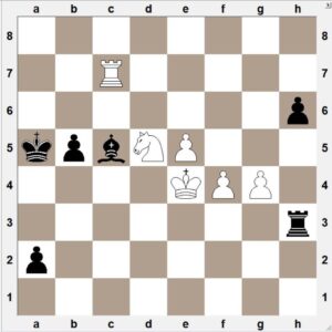 Nú á svartur tvo vinningsleiki, 51. … Kb3 og 51. … Ba3 en hann valdi hinsvegar …