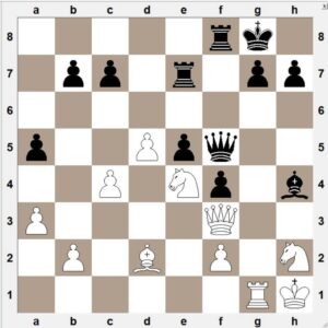17. Hxe6! fxe6 18. Rg5! – með hugmyndinni 18. … Bxg2 19. Dxe6+! og mátar. Hvítur vann eftir 28 leiki.