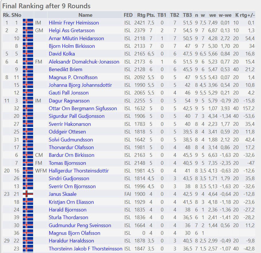 Óttar Örn Bergmann Sigfússon hækkaði manna mest og bætir 157 hraðskákstigum við sig!