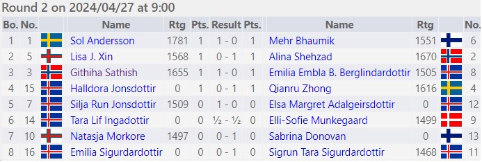 Margrét Kristín og Hrafndís Karen tefldu innbyrðis. Mjög sveiflukennd skák þar sem báðir keppendur misstu af bestu leiðunum en Margrét Kristín vann að lokum.