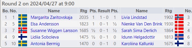 Sóley Kría vann góðan sigur á Hannele Junell. Sóley tefldi vandaða skák, tók smátt og smátt yfir og vann með vel útfærðri kóngssókn.