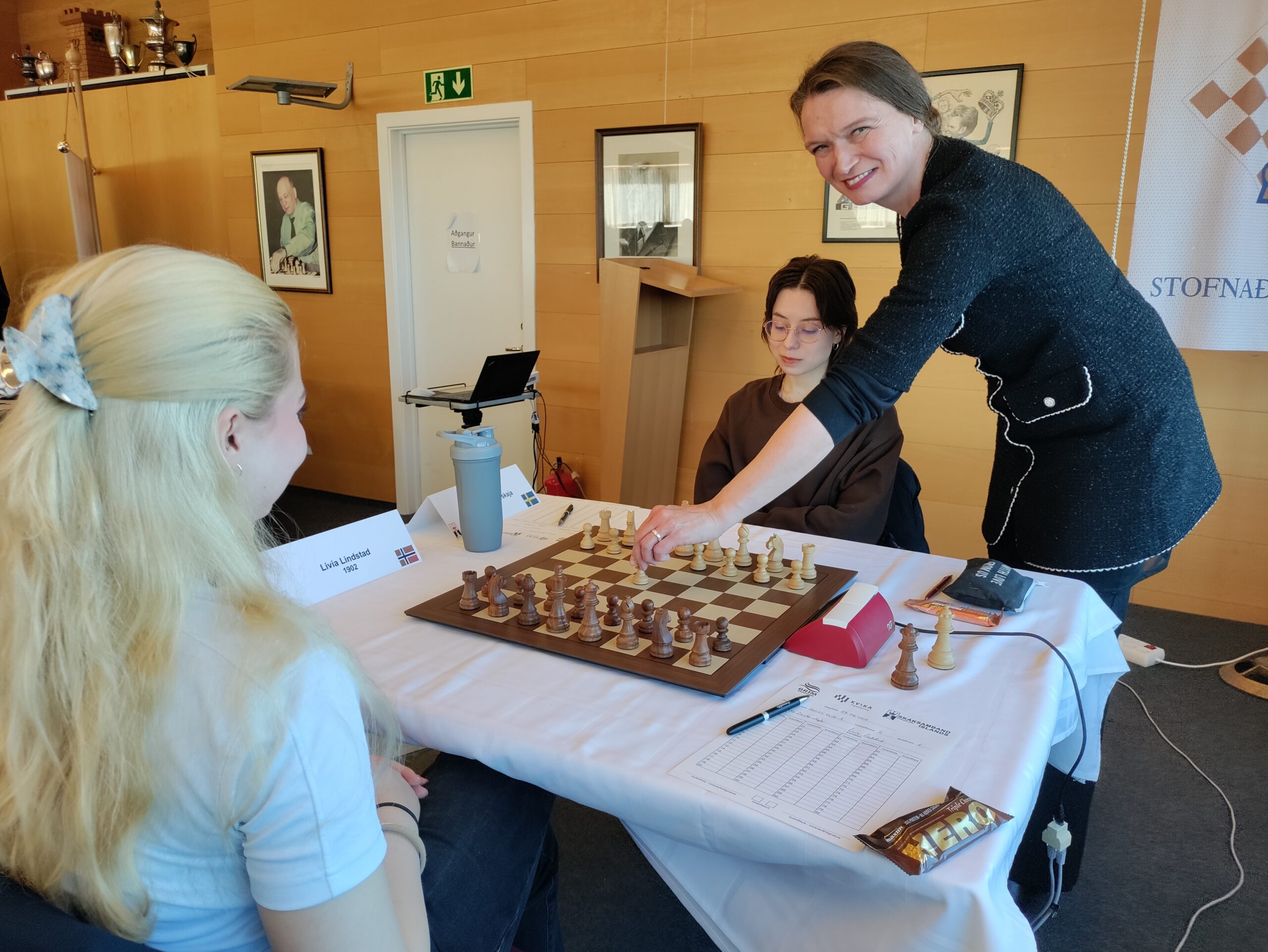 Tara Líf bjargaði jafntefli gegn Elli-Sofie eftir að hafa lent í vandræðum í byrjuninni. Tara Líf nýtti tímann sinn og færin vel og komst inn í skákina með hættulegum hótunum. Góð redding.