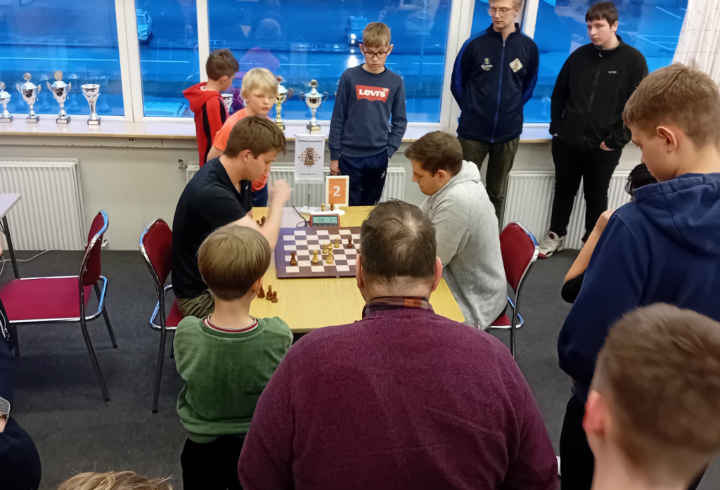 Markús Orri Óskarsson og Josef Omarsson eru tvær efnilegir skákmenn til viðbótar sem áttust við í mikilli rimmu. Að þessu sinni virtist Josef vera að gera allt rétt. Josef með svart lokaði drottningu Markúsar inni sem kostaði mann, en þó fyrir tvö peð. Liðsaflinn og betri stjórn á svörtum reitum hefði átt að skila vinningnum í hús en í tímahraki kom fingurbrjótur hjá Josef.