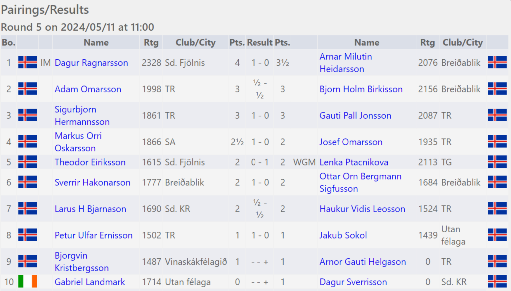 Gaman að sjá þegar stúderingar skila sér eins þegar það sem skákhetjur fyrri tíma skildu eftir á borðinu skilar sér til yngri kynslóða! Dagur náði eins og Friðrik að búa til vinning úr þessu endatafli þó fræðilegt jafntefli sé „rétta niðurstaðan“ í báðum tilvikum!