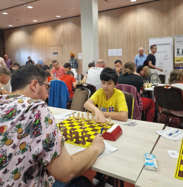 Josef hafði hvítt gegn stigahærri andstæðing, Mateusz Skomial (2083). Josef átti sénsa í lokin þegar hann var að pressa með drottningu+riddara gegn drottningu+biskup en Mateusz náði þráskák áður en of illa fór.