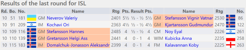 Í lokaumferðinni halda áfram erfið verkefni gegn stigalægri skákmönnum sem eru ekki líklegir til að gefa neitt eftir. Hannes og Helgi óskuðu eftir að verða ekki paraðir í lokaumferðinni sem var í boði frá mótshöldurum.