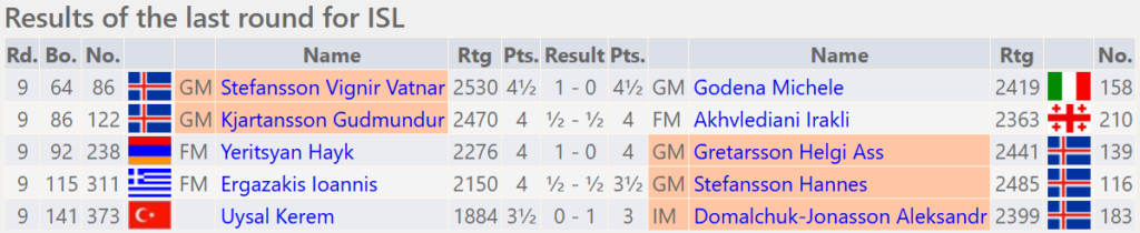 Vignir Vatnar Stefánsson stóð sem fyrr best að vígi fyrir umferðina með 4,5 vinning eftir gott gengi. Helgi og Guðmundur höfðu 4 vinninga, Hannes 3,5 og Aleksandr 3 vinnninga.