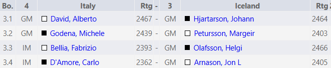 Jón L. Árnason lenti í erfiðri stöðu í miðtaflinu og var u.þ.b. að tapa peði þegar jafnteflin hrönnuðust inn á borðunum fyrir ofan. Jón sat eftir í súpunni og náði ekki að bjarga erfiðri stöðu gegn Carlo D’Amore.