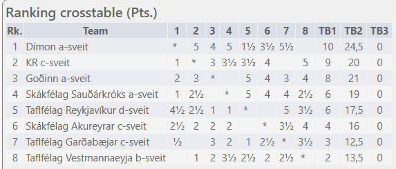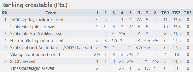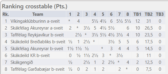 KR fær silfrið landi þeir sigri gegn Breiðablik en Taflfélag Reykjavíkur á möguleika á silfrinu leggi Blikar KR-inga að velli. TR fær lágmark bronsmedalíu leggi þeir TG að velli.