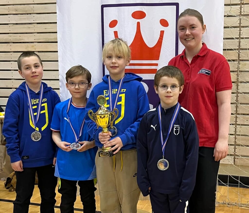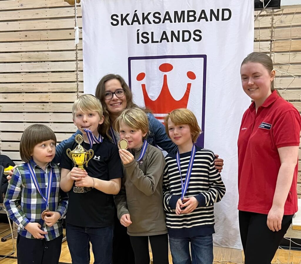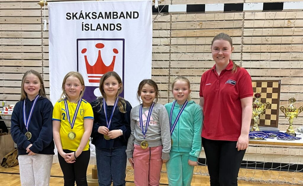Íslandsmeistarar Hofsstaðaskóla ásamt liðsstjóra og varaforseta SÍ