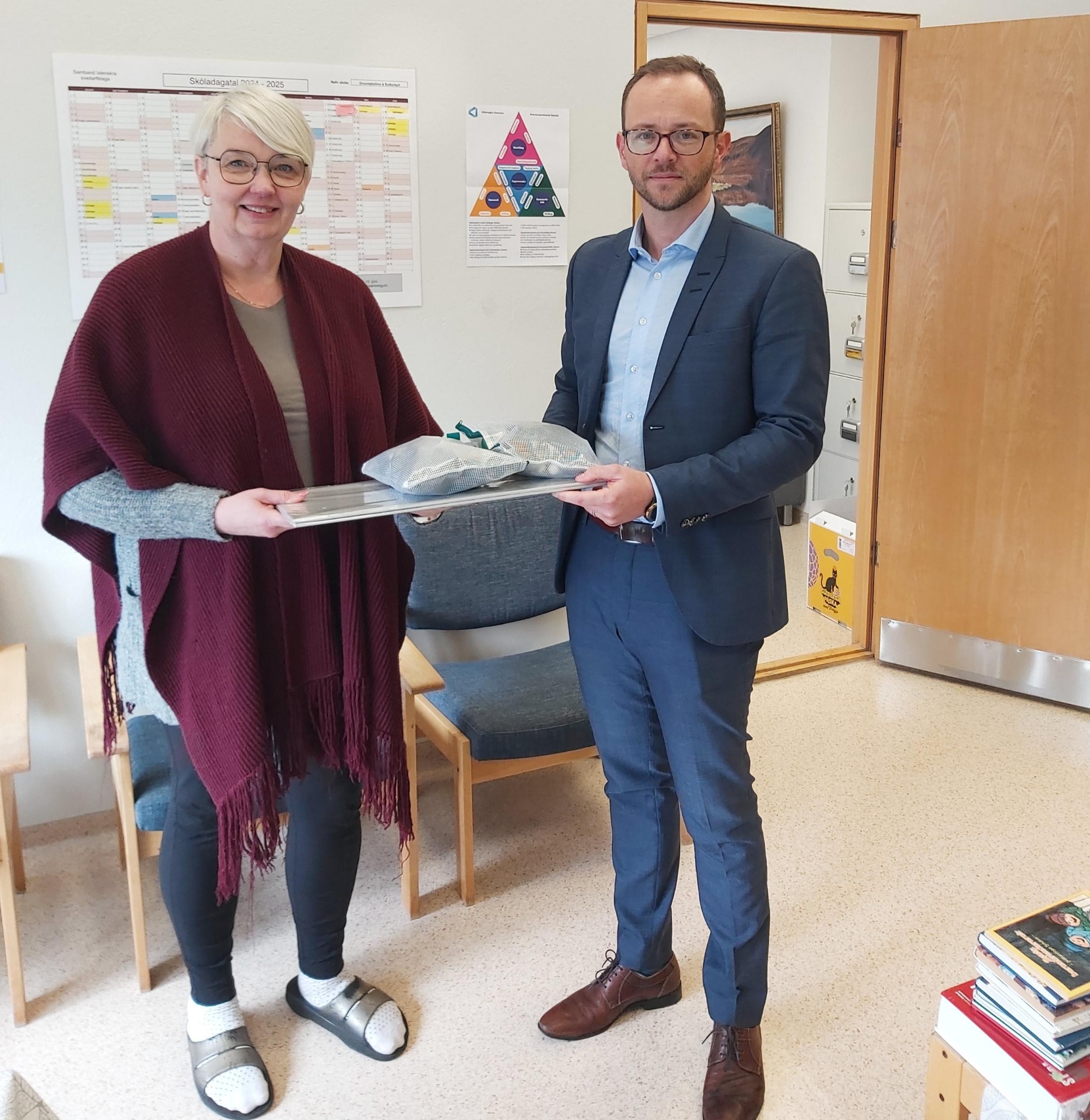 Þessir erindrekar skákarinnar færðu grunnskólunum nokkur skáksett að gjöf frá Skáksambandi Íslands. Vonin er að þau komi að góðum notum í skólastarfinu í framtíðinni.