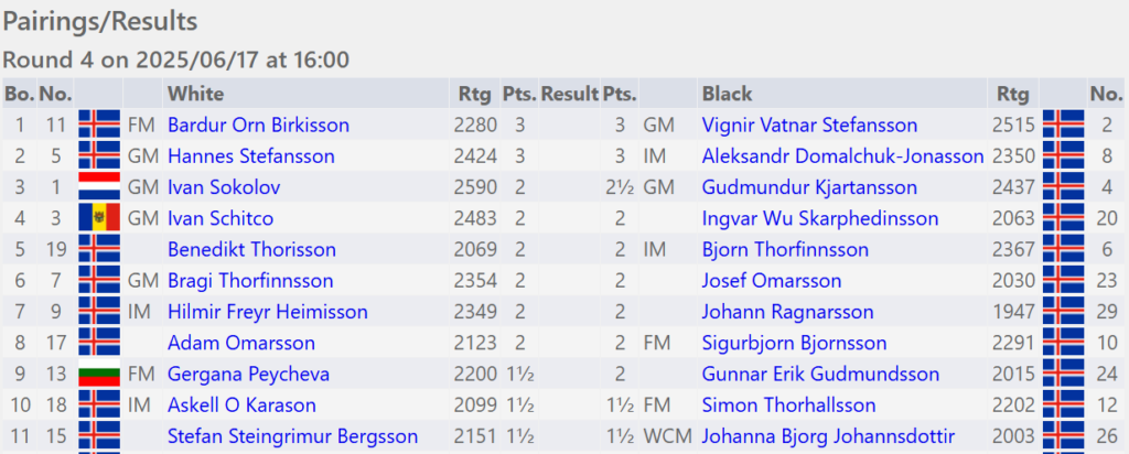 Í fjórðu umferðinni á Þjóðhátíðardaginn mætast á efstu borðum: