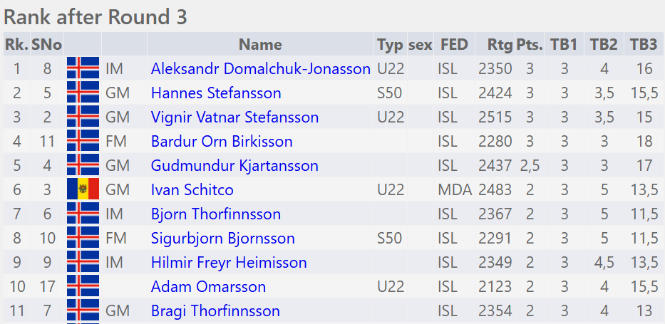Fjórir því með fullt hús að loknum þremur umferðum: